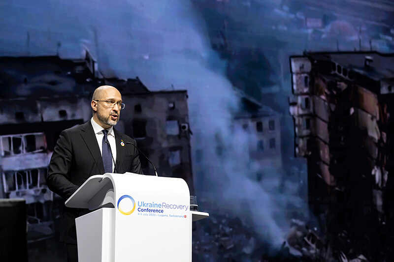 На данный момент повреждены либо полностью разрушены более 1200 учебных заведений, более 200 больниц, тысячи километров сетей газо-, водо- и электроснабжения, автомобильных и железных дорог. По оценкам ведомств, только инфраструктурные потери страны составляют более 100 миллиардов долларов. По мнению Шмыгаля, основным источником финансирования должны стать замороженные активы России, которые, по разным оценкам, составляют от 300 до 500 млрд долларов.